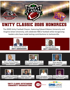 JACKSONVILLE, Fla. - iSportsWire -- The 2025 Unity Football Classic, featuring Edward Waters University and Virginia Union University, will celebrate HBCU football while recognizing leaders who have made lasting contributions to Jacksonville.
